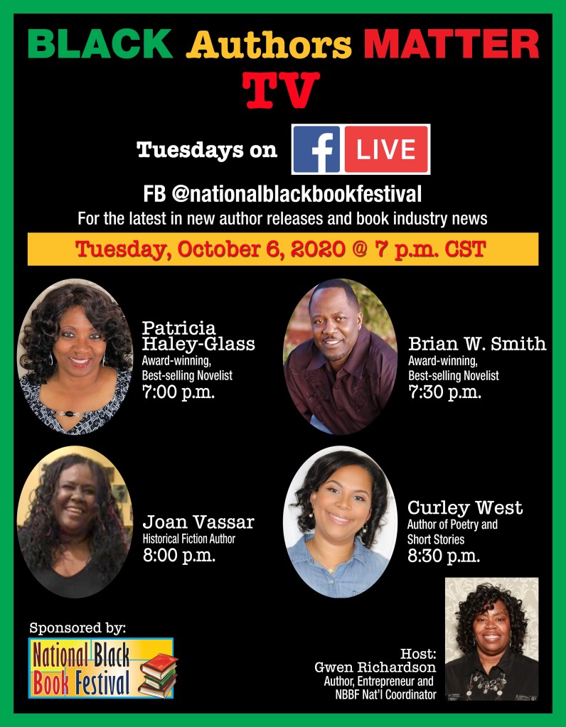 I am asking for your support. Please join me live on Facebook @nationalblackbookfestival on Friday, October 23, 2020. My interview is at 7 pm Central Time. I appreciate all of your support! May God continue to bless you all.